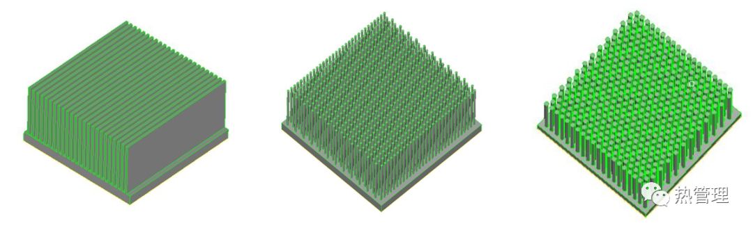 pin_fin式散热器圆柱达到一定高度,温度不再变化,因此与肋片式相比,高度可以做低一些,达到减小产品体积的目的。